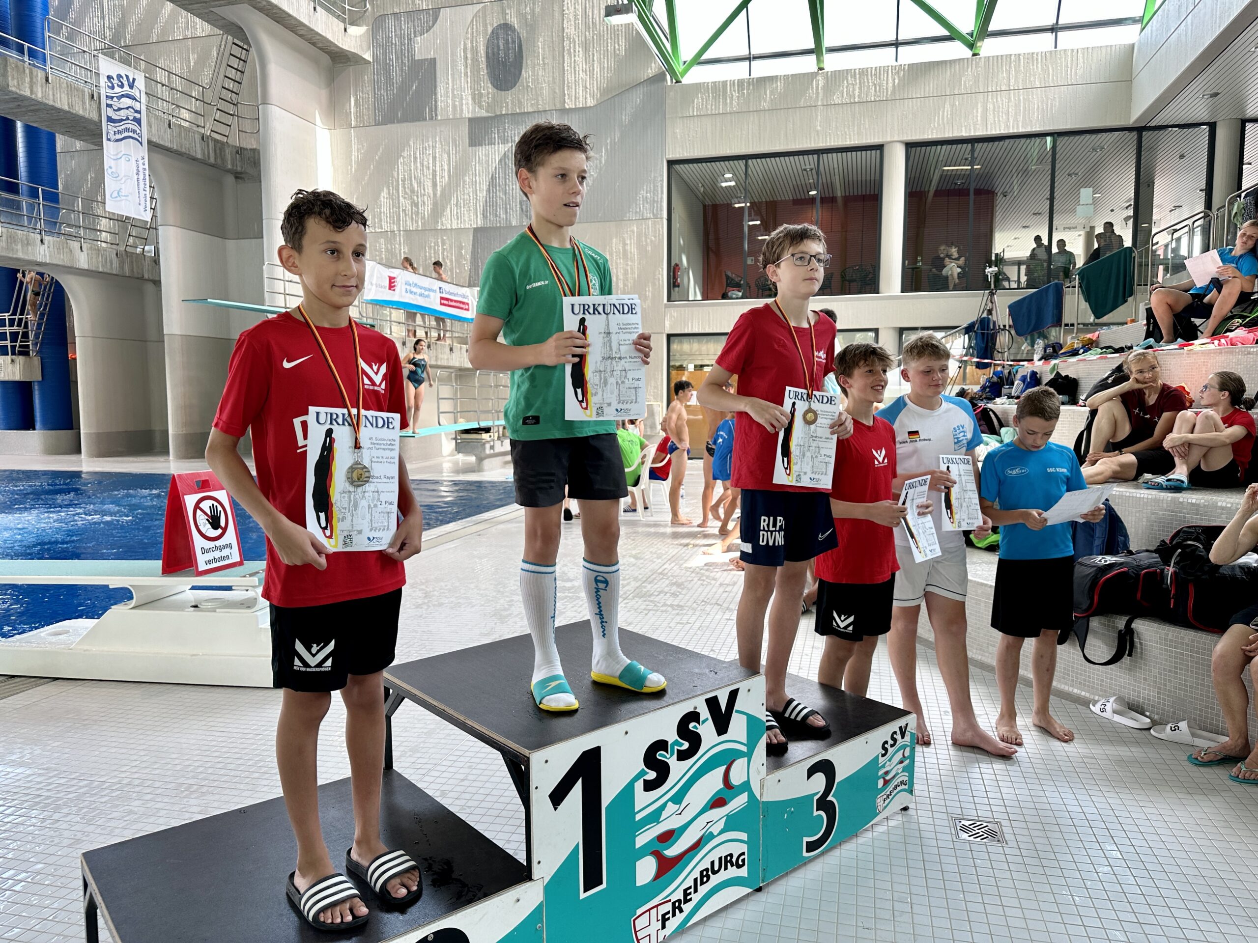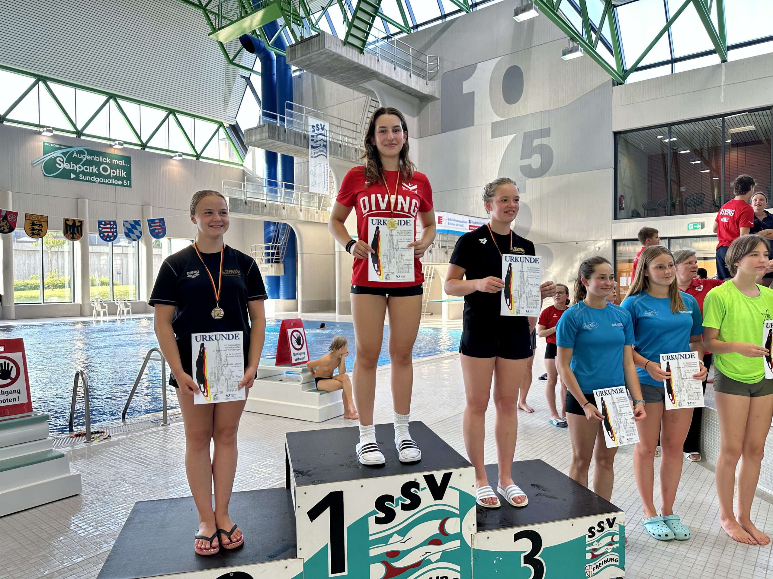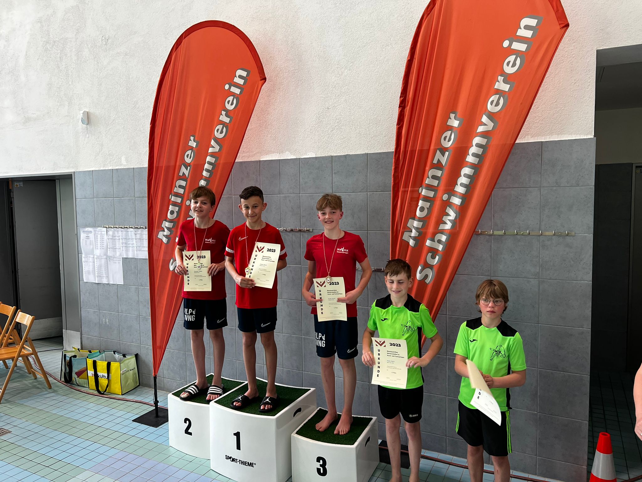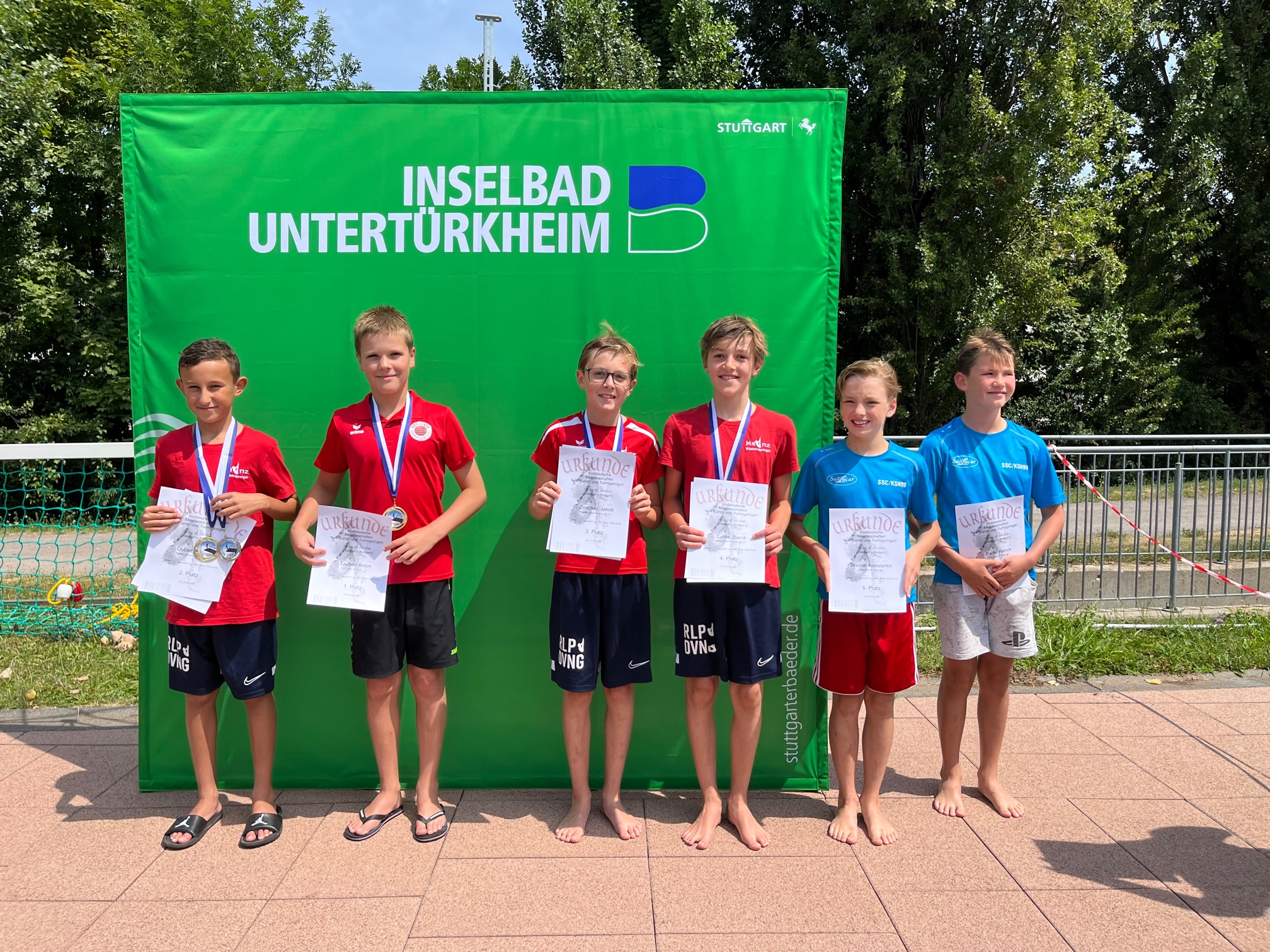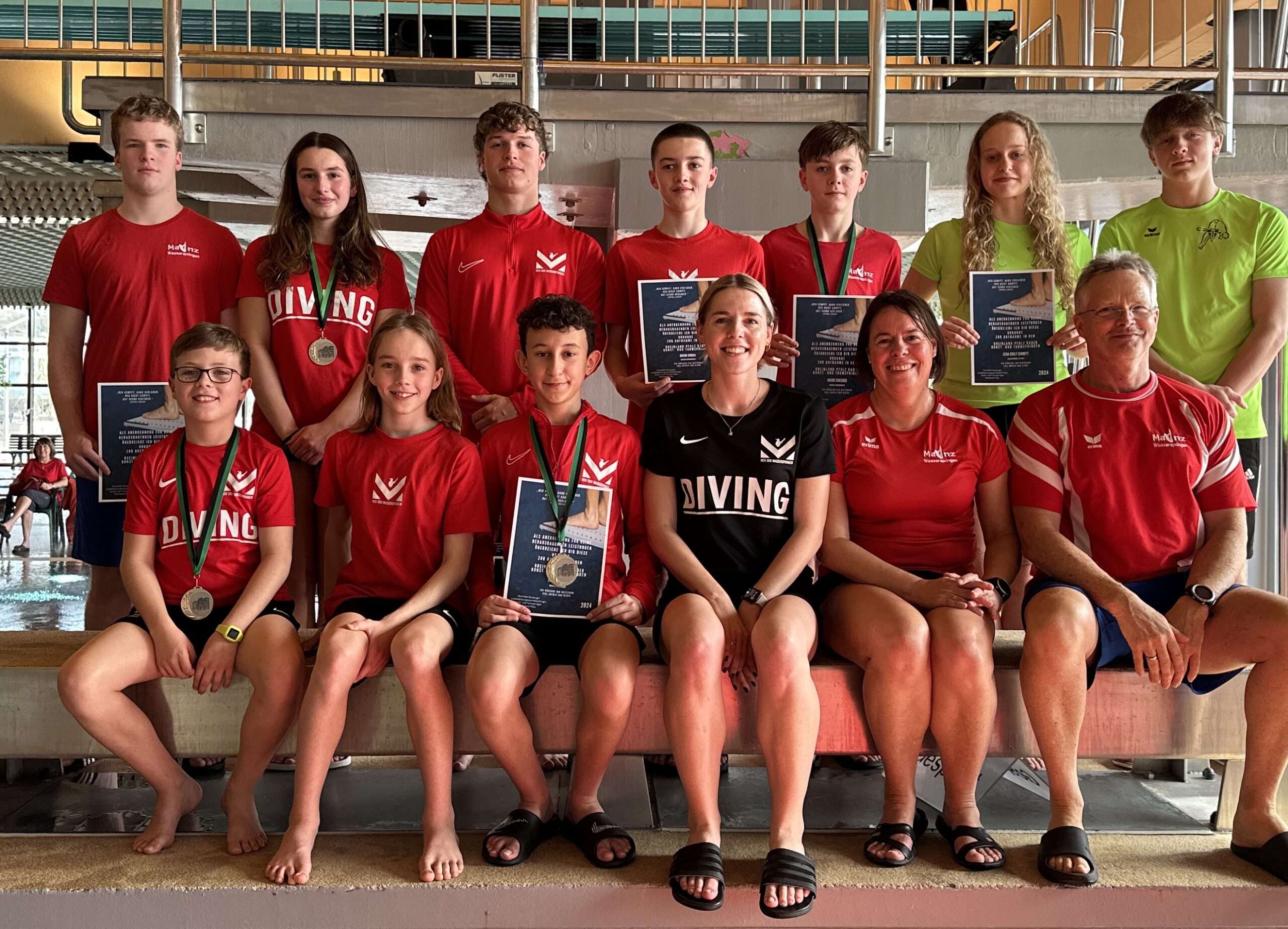Malte Schöneich (MSV), Alexandra Zügel (MSV), Jakob Batzer (MSV), David Curda (MSV), Jakob Zinecker (MSV), Lena-Emily Schmitt (SSV Trier), Lars Keller (SSV Trier), Julius Steiger (MSV), Jonas Curda (MSV), Rayan Obbad (MSV), Mirja Wirth (Landestrainerin RLP), Dorothée Neuburger (Landesleistungssportbeauftragte RLP, Fachwartin Wasserspringen SWSV), Gerd Neuburger (Vizepräsident Sport SWSW)