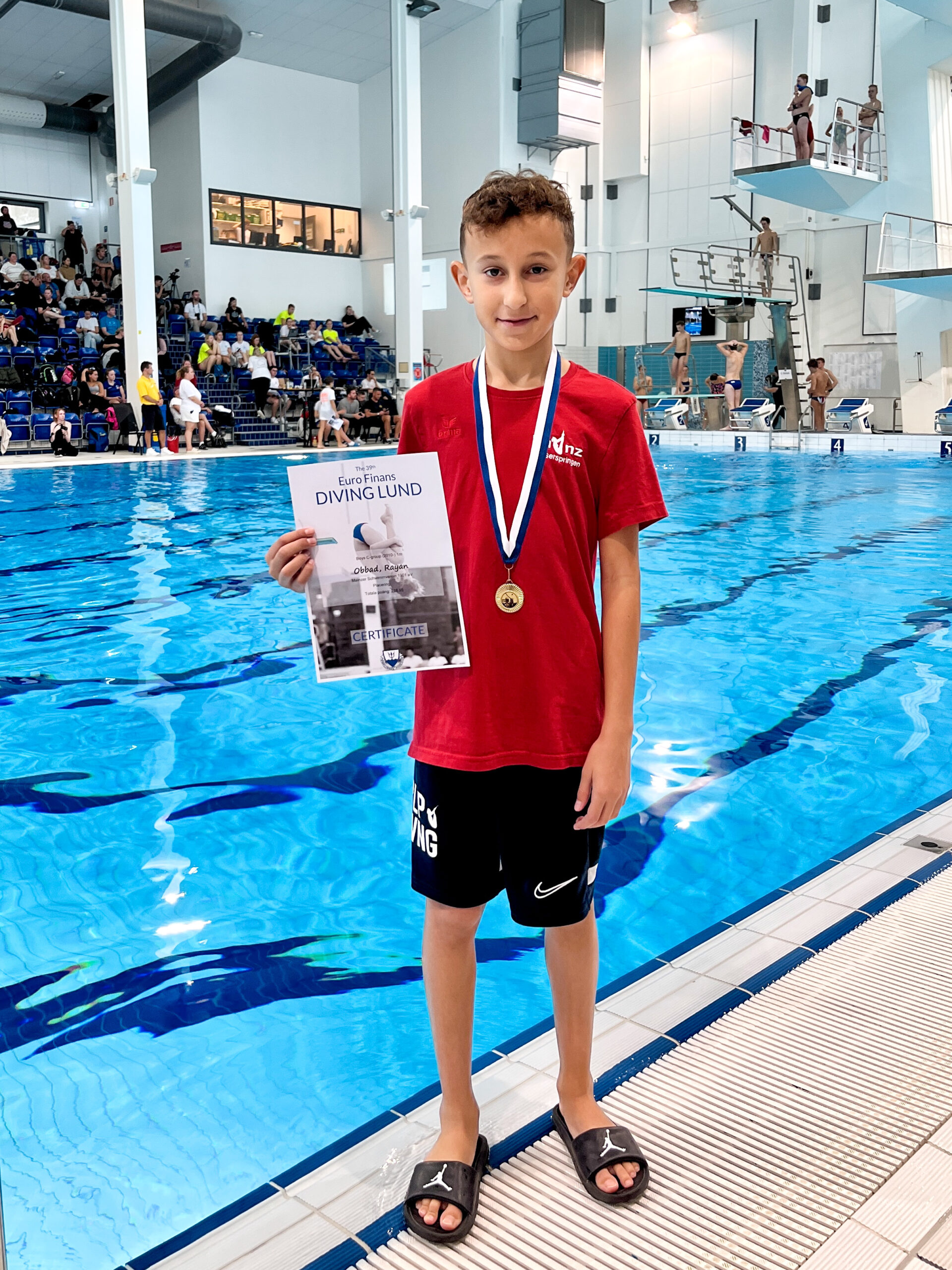 „Für Rayan war es sein erster WK auf internationaler Ebene. Er ist alle drei Höhen souverän gesprungen und hat eine starke Leistung gezeigt. Vor allem in den Brettdisziplinen hat er sein Können unter Beweis gestellt, denn er ist mit neuen Kürsprüngen an den Start gegangen. Ich bin sehr zufrieden mit seiner Leistung. Er hat von allen drei Höhen den 6. Platz erzielt. Bei der C-Jugend 2010 gab es allerdings kein offizielles Ranking, weil hier der „Spaß“ im Vordergrund stehen sollte. Alle Teilnehmer haben aber ein Zertifikat und eine Medaille erhalten (und wurden sicher genauso hart bewertet, wie die Springer in den anderen Platzierungswettkämpfen).
