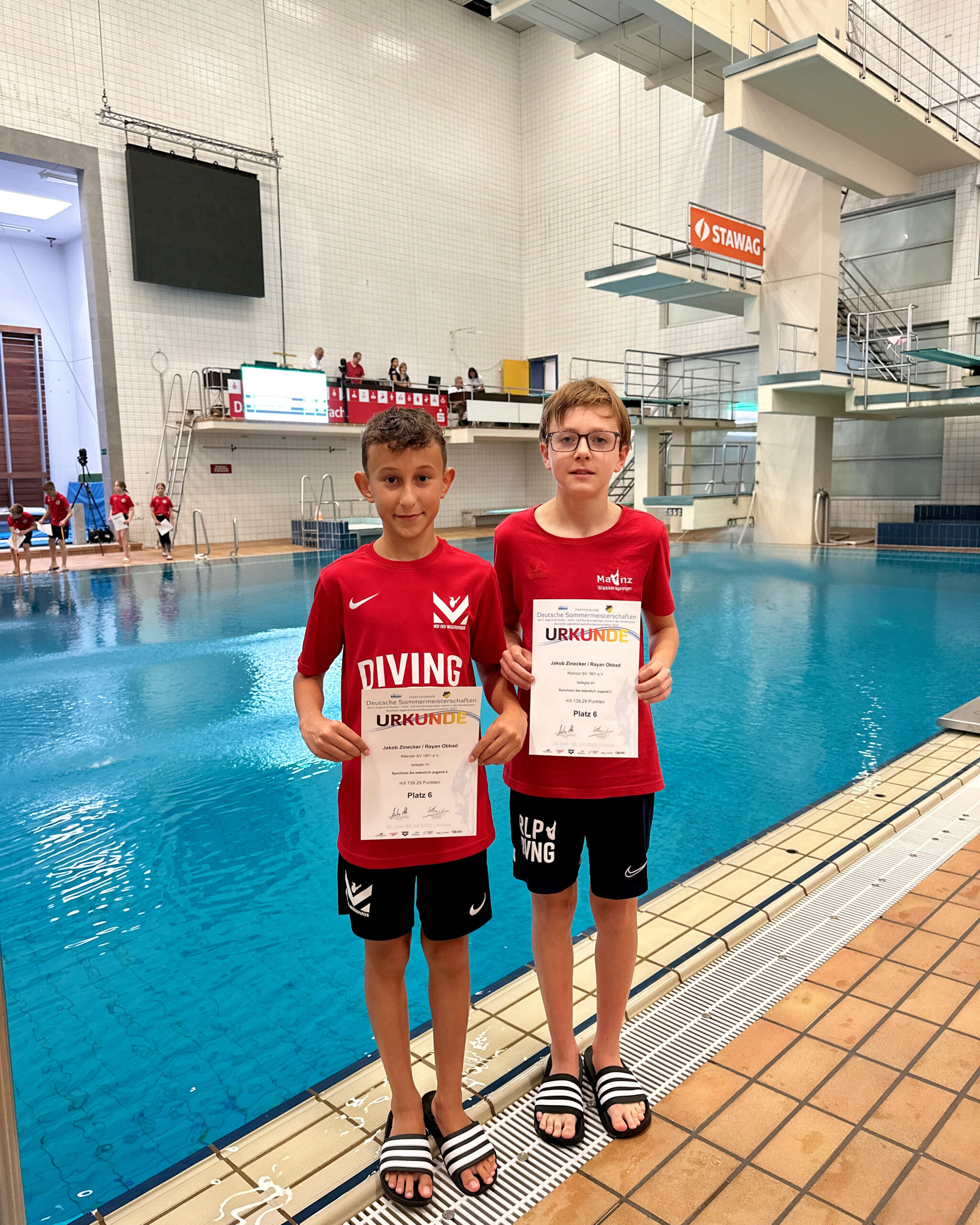 Jakob Zinecker gewann in der C-Jugend vom Turm sowie in der Kombinationswertung die Bronze Medaille. Vom 1 Meter und 3 Meter war es beides Mal Platz 4. David Curda belegte in der C-Jugend 2x Platz 4 (Turm & Kombination) sowie 2x Platz 5 (3 Meter, 1 Meter).