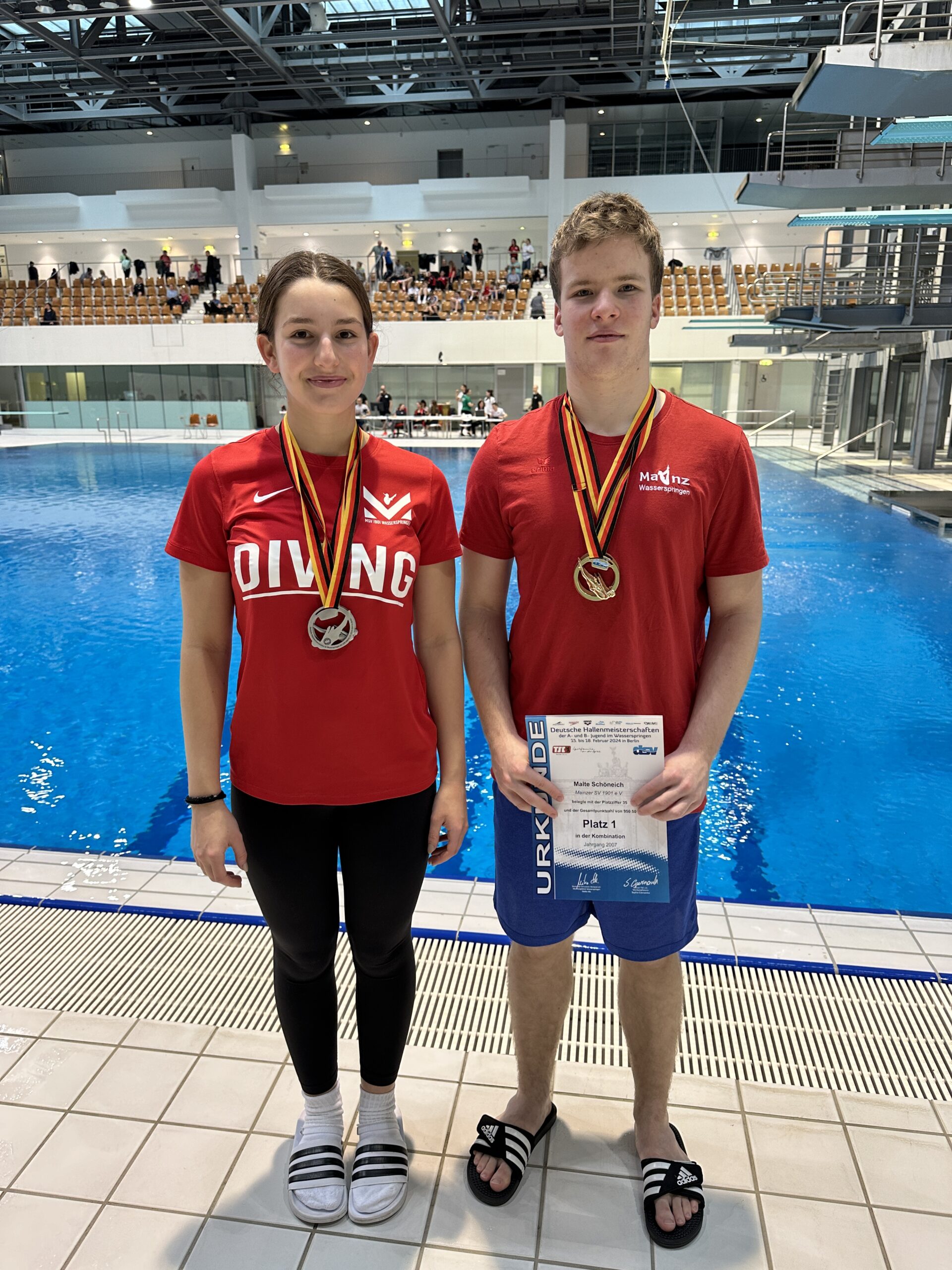 Bei den Deutschen Wintermeisterschaften 2020 der A- und B-Jugend im Wasserspringen in der Hauptstadt Berlin, sahnten die Springer des Mainzer SV mal so richtig ab. Zur großen Freude des Trainers Gerd Neuburger flogen alle Teilnehmer mit mindestens einer Medaille wieder nach Hause. Mit 14 DSV-Medaillen, davon 6 goldenen Titelgewinnen und je 4 Silber- und Bronzemedaillen, war der MSV extrem erfolgreich. Das hat es noch nie oder schon lange nicht mehr gegeben.